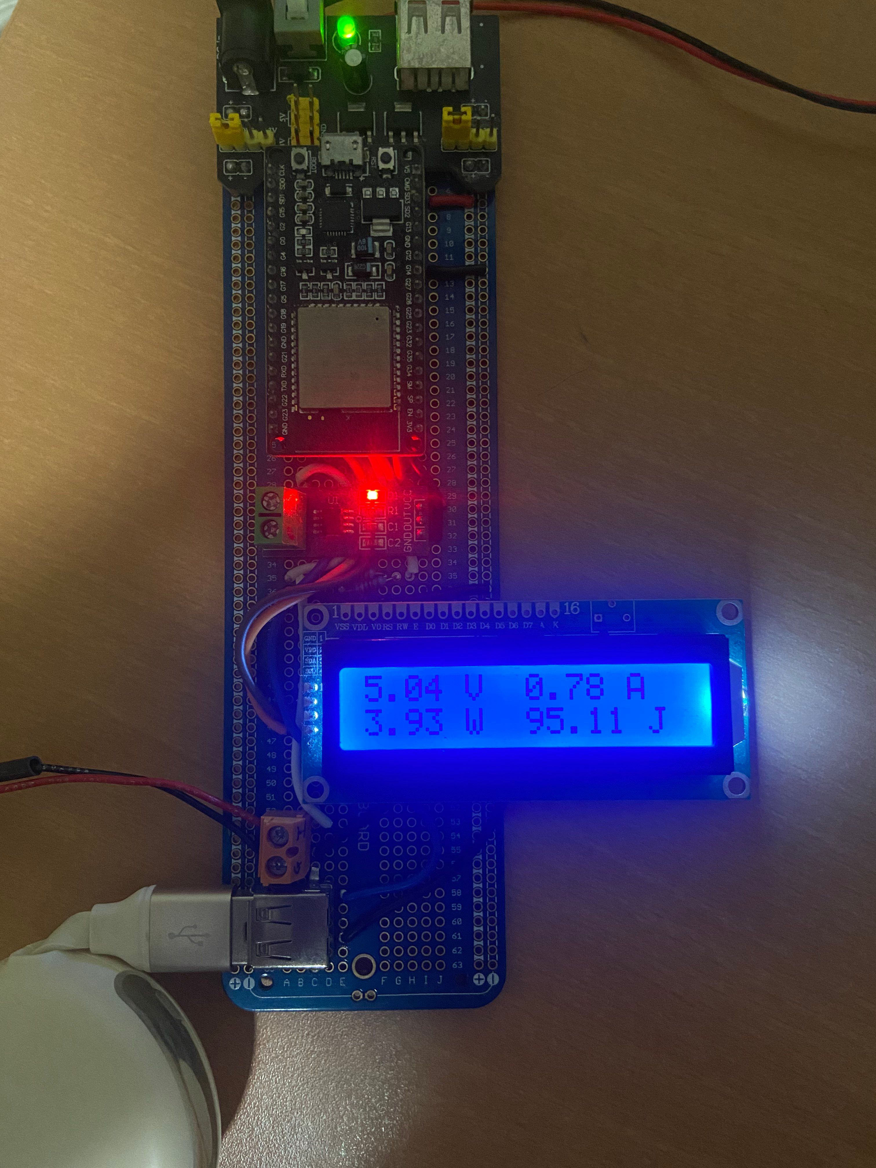 The result was a fully functioning power meter that was suitable for the degree of accuracy that I required. Below is an image of the meter in action when charging an iPhone.